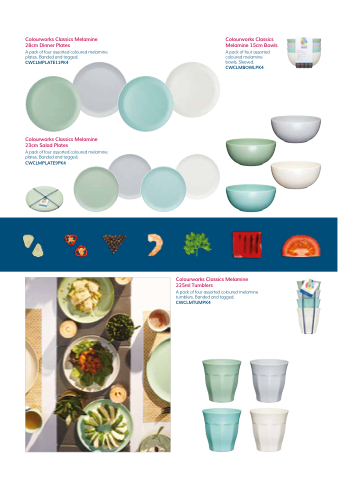 A pack of four assorted coloured melamine tumblers. Banded and tagged. CWCLMTUMPK4