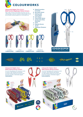 High quality stainless steel blades with taper ground cutting edges, coloured, magnetic safety storage sheath and soft grip handles designed for comfortable use.