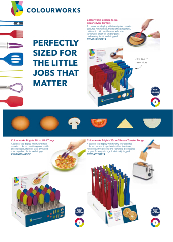 A counter top display with twenty-four assorted coloured mini turners. Made of heat resistant, anti-scratch silicone, these smaller size