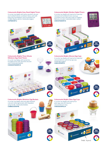 A counter top display with twenty-four assorted coloured silicone cushioning egg cups. Individually tagged.