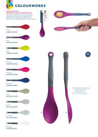With multiple additional features including a side tasting lip and internal measure markings for 1 teaspoon and 1 tablespoon. Suitable for use on non-stick surfaces and heat resistant to 260°C. Carded.