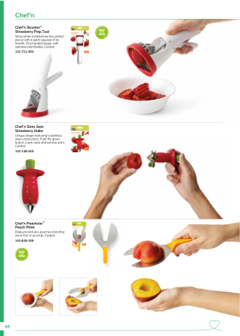Slices whole strawberries into perfect pieces with a quick squeeze of its handle. One-handed design with stainless steel blades. Carded.