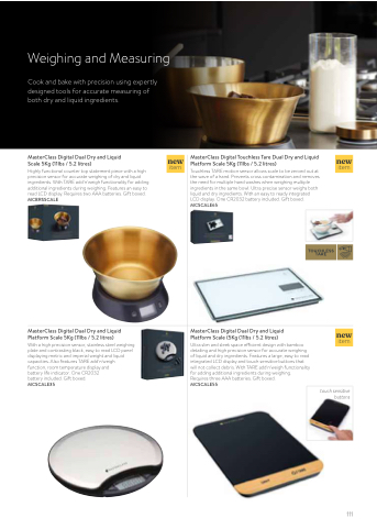 Ultra slim and sleek space efficient design with bamboo detailing and high precision sensor for accurate weighing of liquid and dry ingredients. Features a large, easy to read integrated LCD display and touch sensitive buttons that will not collect debris. With TARE add‘n’weigh functionality for adding additional ingredients during weighing. Requires three AAA batteries. Gift boxed.
