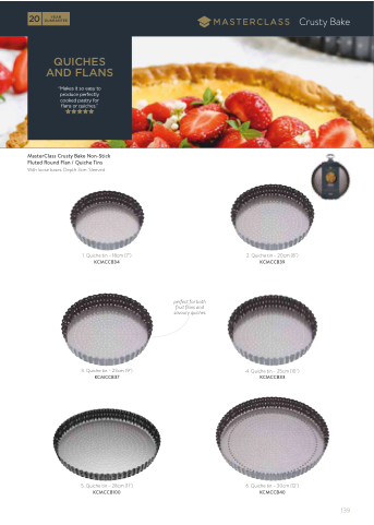 MasterClass Crusty Bake Non-Stick Fluted Round Flan / Quiche Tins With loose bases. Depth 3cm. Sleeved.