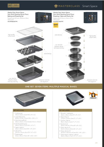 MasterClass Smart Space Non-Stick Stacking Seven Piece Roasting, Cakes and Pastry Set Nested size 30.5cm x 33cm x 11cm. Gift boxed.