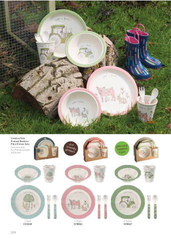 Creative Kids Pressed Bamboo Fibre Dinner Sets Five piece sets. Eco friendly product. Gift boxed. 208 1. Duck 2. Piglet 3. Tractor 5178967 C000141 5178966