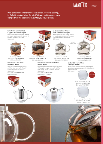 With consumer demand for wellness related products growing, La Cafetière ticks the box for mindful brews and infusion brewing along with all the traditional favourites you would expect.
