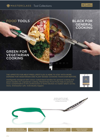Intelligently designed with colour coded black handles for general cooking and green handles for vegetarian cooking, MasterClass Food Tools help to prevent cross contamination in the professional or home kitchen no matter what’s on the menu. Dishwasher safe. Individually tagged.