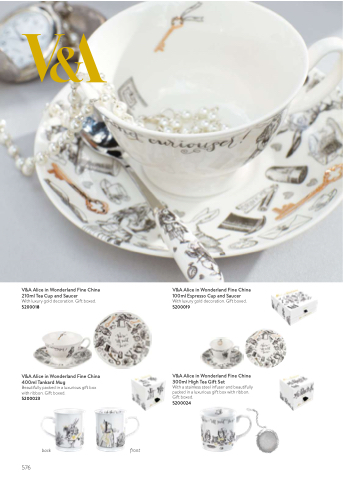V&A Alice in Wonderland Fine China 100ml Espresso Cup and Saucer With luxury gold decoration. Gift boxed. 5200019