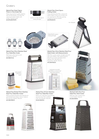 Featuring premium quality stainless steel etched blades. Includes fine, coarse and zester blades with holder. Display boxed. MCSPSGRATE3PC