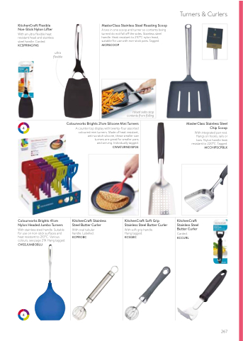 With stainless steel handle. Suitable for use on non-stick surfaces and heat resistant to 210°C. Various colours, see page 219. Hang tagged. CWSSJUMBOBLU