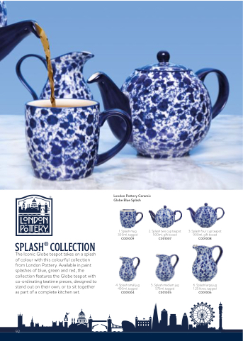 The Iconic Globe teapot takes on a splash of colour with this colourful collection from London Pottery. Available in paint splashes of blue, green and red, the collection features the Globe teapot with co-ordinating teatime pieces, designed to stand out on their own, or to sit together as part of a complete kitchen set.