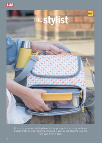 10 With subtle greys and stylish yellows, this range is perfect for being on-the-go. Whether that’s for work, travelling, shopping or picnics, complete the look and have your lunch in style. new range