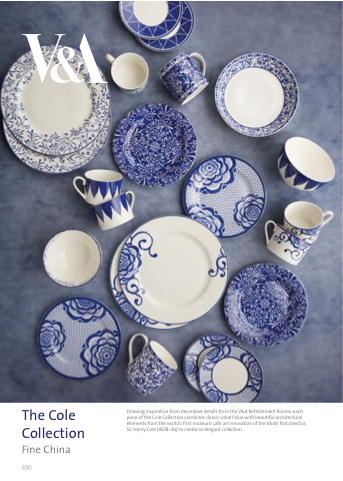 Drawing inspiration from decorative details from the V&A Refreshment Rooms, each piece of the Cole Collection combines classic cobalt blue with beautiful architectural elements from the world’s first museum café, an innovation of the V&A’s first director, Sir Henry Cole (1808–82) to create an elegant collection.