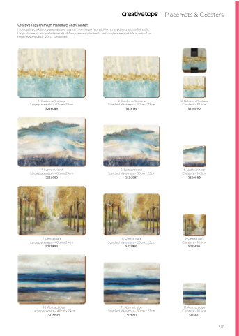 High quality cork back placemats and coasters are the perfect addition to any dining and coffee table. Large placemats are available in sets of four, standard placemats and coasters are available in sets of six. Heat resistant up to 120°C. Gift boxed.