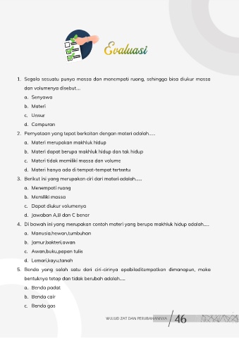 3. Berikut ini yang merupakan ciri dari materi adalah……