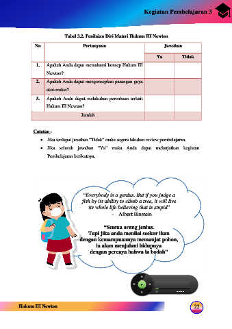 Tabel 3.2. Penilaian Diri Materi Hukum III Newton