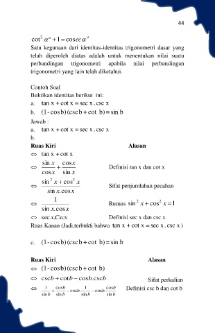 1 cos b cos b. 1 cos b. cos b Definisi csc b dan cot b