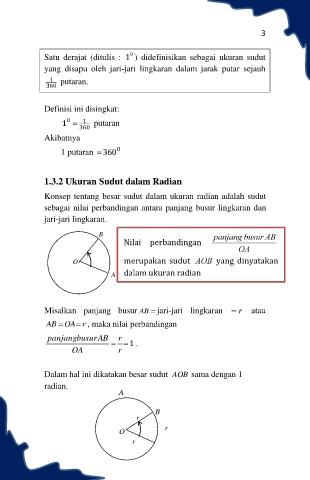 Misalkan panjang busur AB jari-jari lingkaran atau