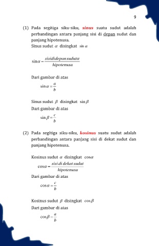 (1) Pada segitiga siku-siku, sinus suatu sudut adalah
