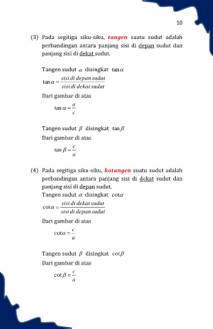 (3) Pada segitiga siku-siku, tangen suatu sudut adalah