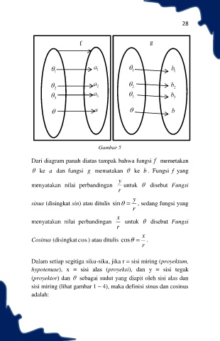 sisi miring (lihat gambar 1 – 4), maka definisi sinus dan cosinus
