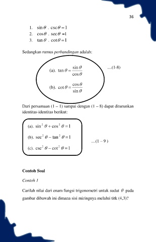 Carilah nilai dari enam fungsi trigonometri untuk sudut pada