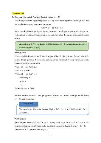 1. Teorema Sisa untuk Pembagi Bentuk Linier ( − )
