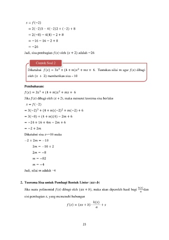 Jadi, sisa pembagian ( ) oleh ( + 2) adalah −26