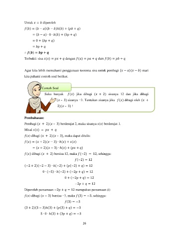 ( ) dibagi ( − 3) bersisa −3, maka (3) = −3, sehingga:
