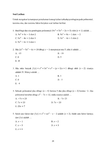 teorema sisa, dan teorema faktor kerjakan soal latihan berikut: