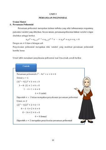 Persamaan polinomial merupakan kalimat terbuka yang nilai kebenarannya tergantung