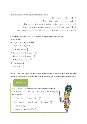 persamaan suku banyak yang berderajat empat atau lebih menggunakan teorema vieta berikut.
