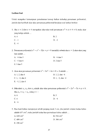 4. Diketahui , , adalah akar-akar persamaan polinomial − 2 − 5 + = 0.