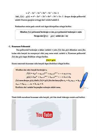 Dua polinomial berderajat    dalam variabel    yaitu   (  ) dan   (  ) dikatakan sama jika