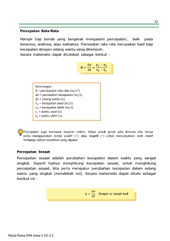 besarnya, arahnya, atau keduanya. Percepatan rata-rata merupakan hasil bagi