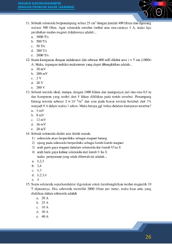 11. Sebuah solenoida berpenampang seluas 25 cm dengan jumlah 400 lilitan dan dipasang