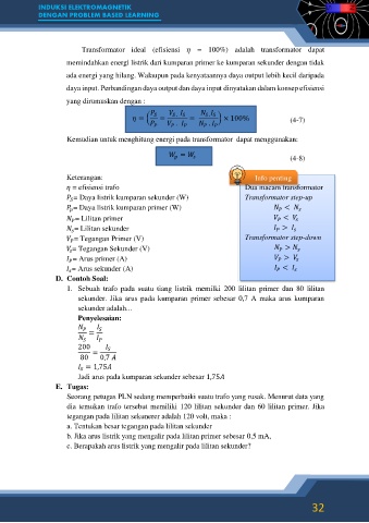 Transformator ideal (efisiensi = 100%) adalah transformator dapat