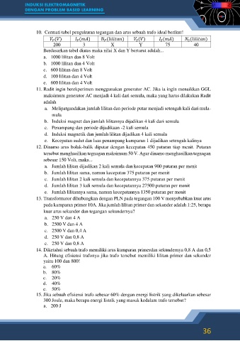 14. Diketahui sebuah trafo memiliki arus kumparan primerdan sekundernya 0,8 A dan 0,5