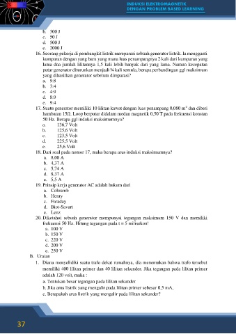 17. Suatu generator memiliki 10 lilitan kawat dengan luas penampang 0,080 m dan diberi