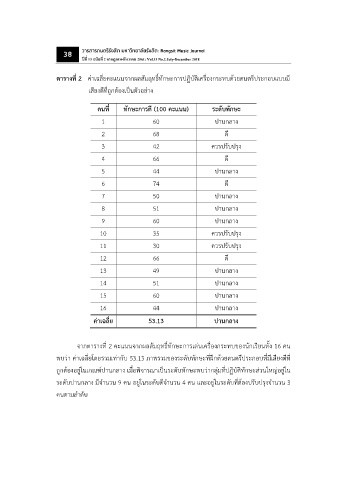 ตารางที 2 ค่าเฉลยคะแนนจากผลสัมฤทธทักษะการปฏบตเครืองกระทบดวยดนตรีประกอบแบบมี