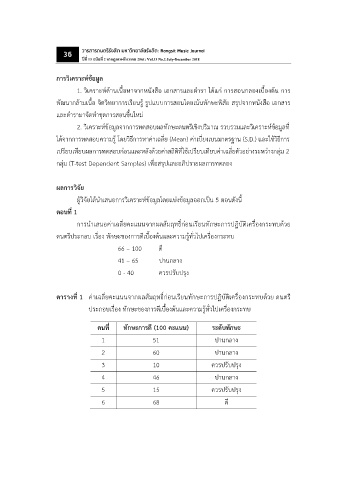 2. วเคราะห์ข้อมูลจากการทดสอบผลทกษะดนตรเชงปรมาณ รวบรวมและวเคราะห์ข้อมูลที ่
