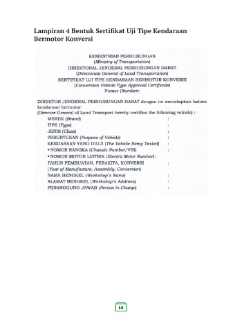 Lampiran 4 Bentuk Sertifikat Uji Tipe Kendaraan Bermotor Konversi