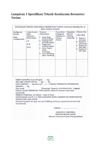 Lampiran 5 Spesifikasi Teknik Kendaraan Bermotor/ Varian