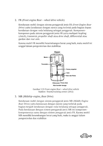 Pada kendaraan dengan sistem penggerak jenis MR ini komponen-