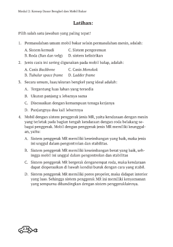 2. Jenis casis ini sering digunakan pada mobil balap, adalah: