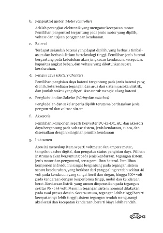jenis motor dan pengontrol, serta pemilihan baterai. Pemilihan
