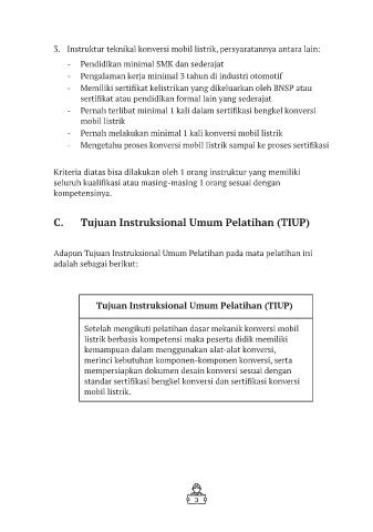 3. Instruktur teknikal konversi mobil listrik, persyaratannya antara lain: