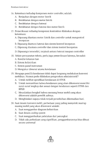 16. Ketentuan terhadap komponen motor controller, adalah: