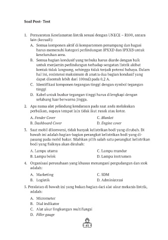 1. Persyaratan Keselamatan listrik sesuai dengan UNECE – R100, antara